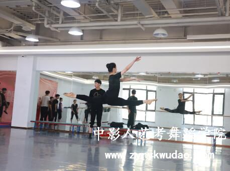 大跳的要求:開,繃,直,外開,要推地而起。前腳成90°后腳成90°,基本功要扎實。