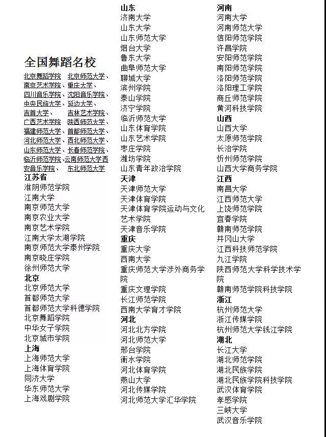 當(dāng)然不是了!在此給各位家長和同學(xué),以及對舞蹈感興趣的愛好者普及一下“舞蹈能考的大學(xué)”。