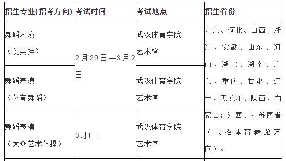 (四)報(bào)考舞蹈表演專(zhuān)業(yè)(體育舞蹈、健美操、啦啦操、大眾藝術(shù)體操方向)、表演專(zhuān)業(yè)(武術(shù)表演、健身健美方向)的湖北省考生可不考慮省統(tǒng)考成績(jī),直接參加我校專(zhuān)業(yè)校考;報(bào)考我校表演專(zhuān)業(yè)(服裝表演方向)的湖北省考生必須參加湖北省統(tǒng)考,且統(tǒng)考合格后方可參加我校專(zhuān)業(yè)???。
