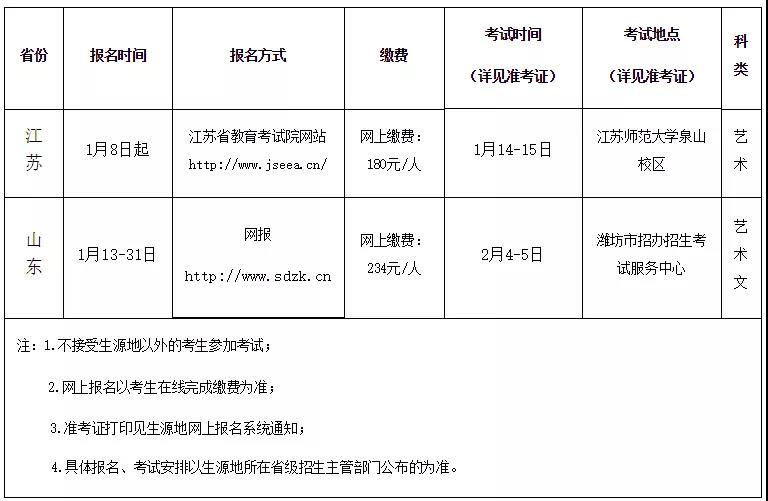 3.學校對文化成績達到省控線且專業成績達到我校校考合格線的進檔考生,按專業成績從高到低順序錄取。具體錄取規則見江蘇師范大學2020年普通本科招生章程。