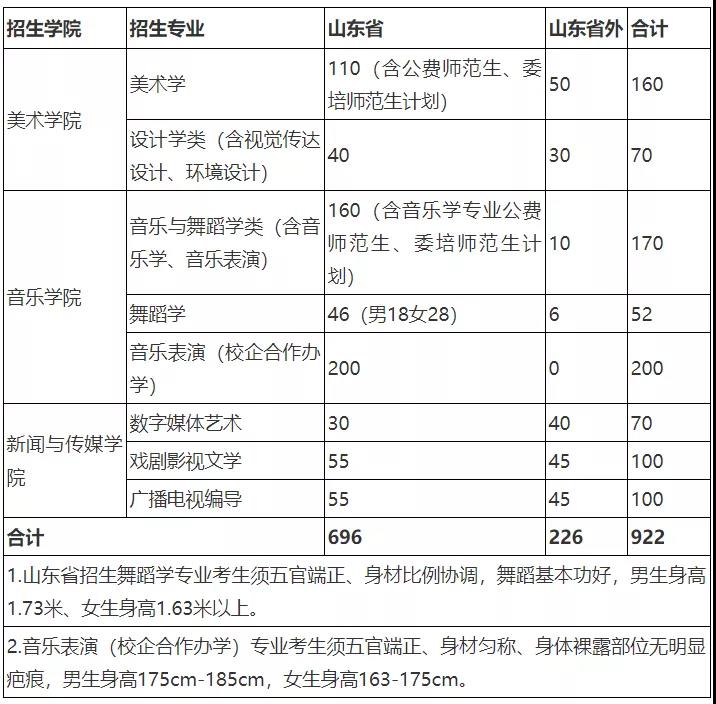 山東師范大學(xué)2020年藝術(shù)類專業(yè)面向全國招生總計劃為922人。