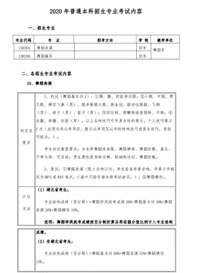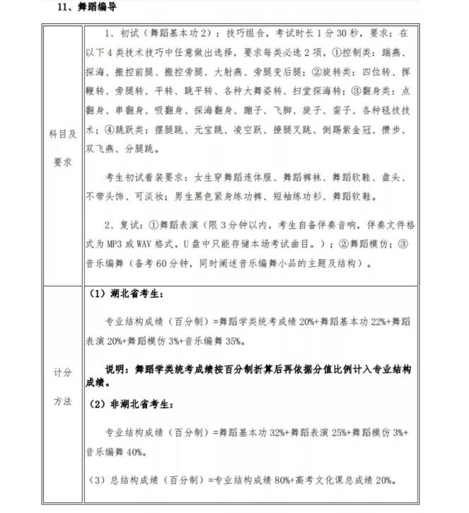 武漢音樂學院藝術類舞蹈專業校考大綱