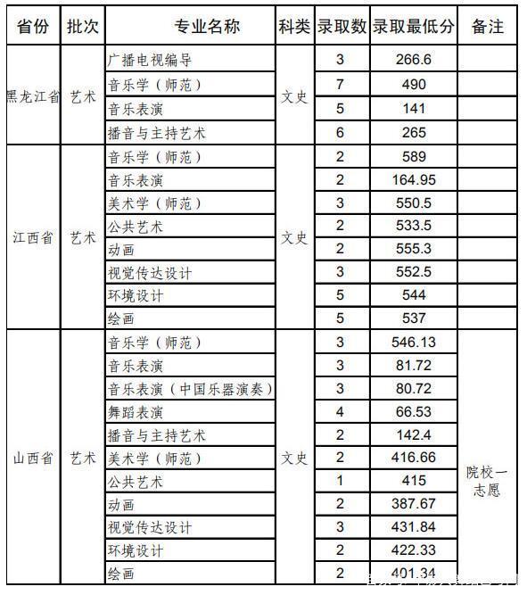 2019年沈陽師范大學各省藝術類專業錄取分數線匯總: