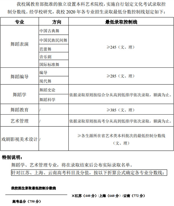 2020年北舞文化課最低分?jǐn)?shù)線:
