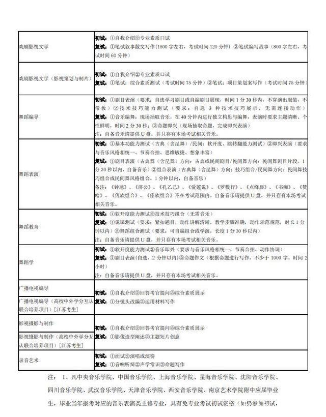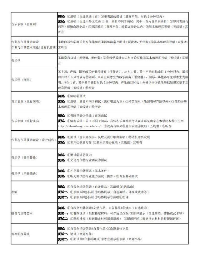 1、音樂表演(聲樂演唱、流行音樂演唱、音樂劇)專業:發聲器官無疾病,聽覺器官無疾病,男身高1.70米以上、女身高1.60米以上,專業特別優秀者,條件可適當放寬;