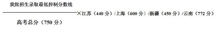 針對江蘇、上海、新疆、云南高考科目及分值,按以下折算公式確定各專業分數線: