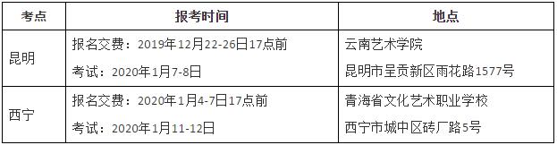 云南省考生請(qǐng)于2019年12月26日17:00前在云南藝術(shù)學(xué)院招考云平臺(tái)完成網(wǎng)上報(bào)名、交費(fèi)。