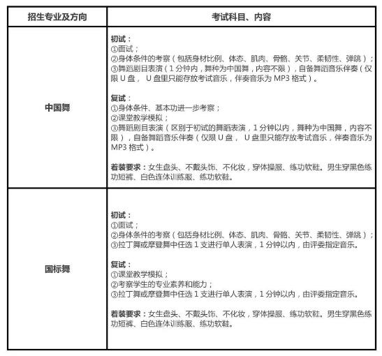 ② 舞蹈表演專業:身心健康,無任何不適宜從事舞蹈訓練和集體生活的疾病與缺陷。